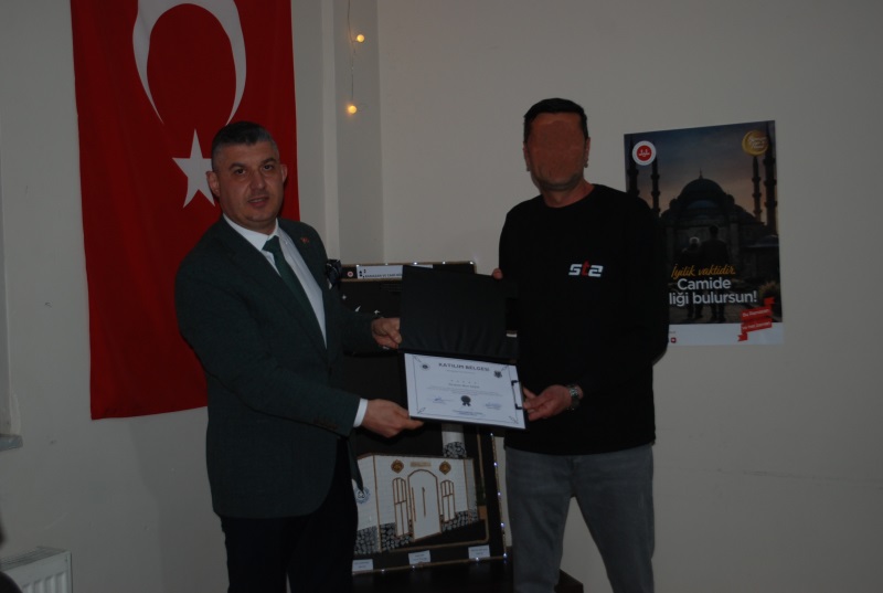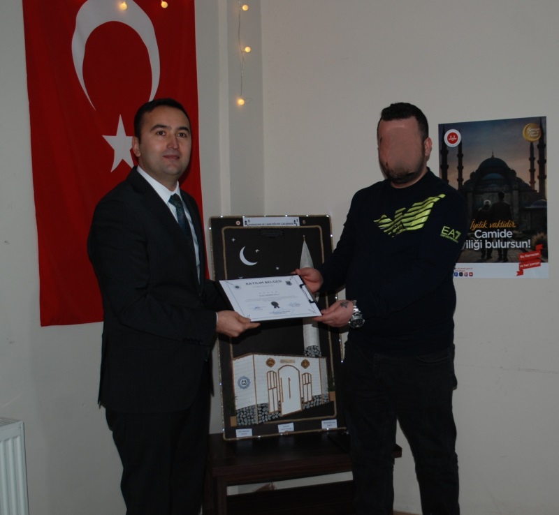 Kurum Müdürümüzün içten açılış konuşmasının ardından, kurumumuzda bulunan iki hükümlünün Ramazan ayı boyunca özveriyle gerçekleştirdiği cami ve rölyef çalışmaları protokole sunulmuştur. Bu anlamlı ve emek dolu çalışmalar, Bolvadin Cumhuriyet Başsavcısı ile Bolvadin Adli Yargı İlk Derece Mahkemesi Adalet Komisyonu Başkanı tarafından başarı belgeleriyle onurlandırılmıştır.
